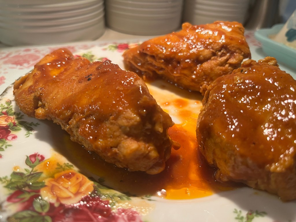I love making historical recipes! Tonight I chose to highlight one of President Eisenhower’s meals: Barbecue Chicken. It’s very simple to make and can be made with the ingredients that you may already have in your own kitchen. As a side dish, I quartered and boiled a few red potatoes and added rosemary as a garnish. It was delicious!