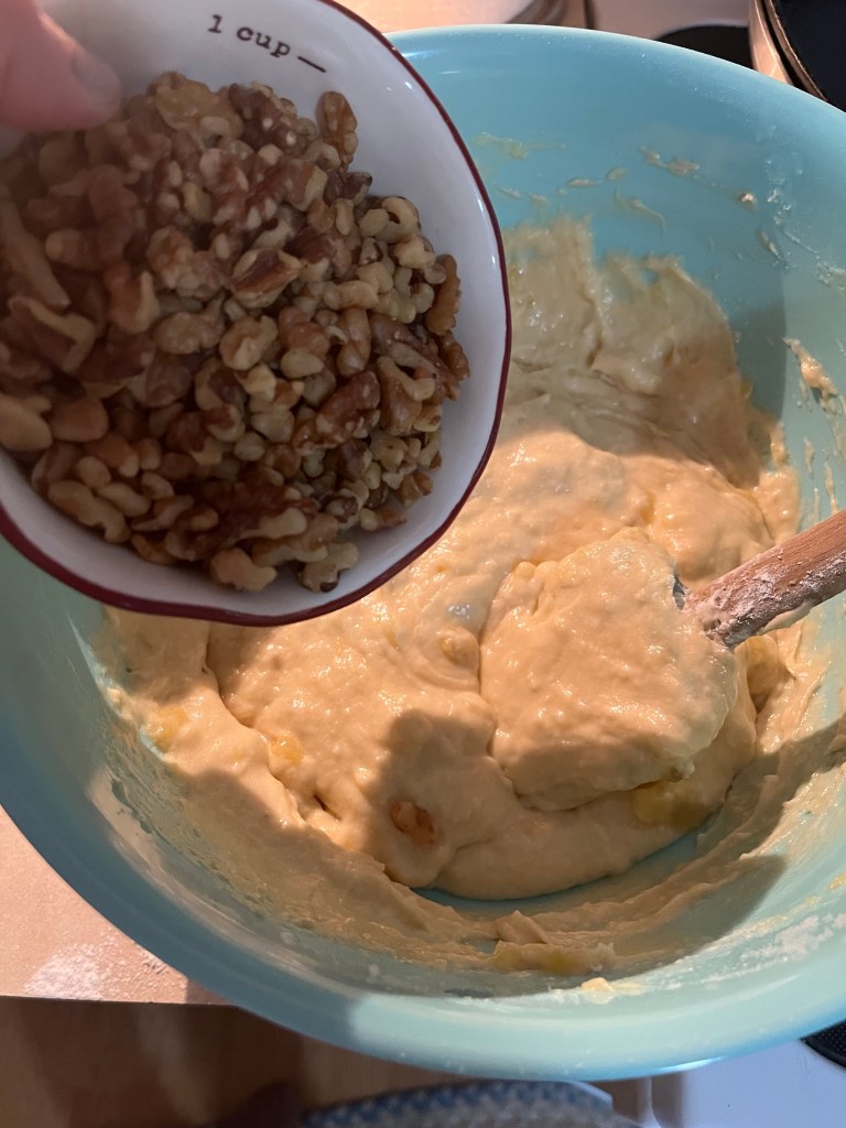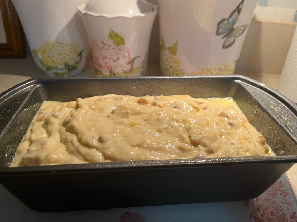 Grease bottoms only of 2 loaf pans: 8 1/2×4 1/2×2 1/2 inches, or 1 loaf pan, 9x5x3 inches (I used one loaf pan of 9x5x3 inches)