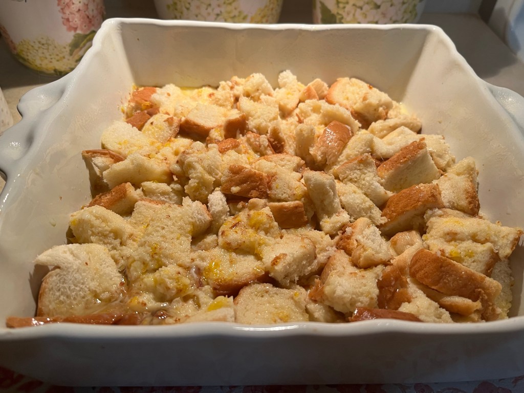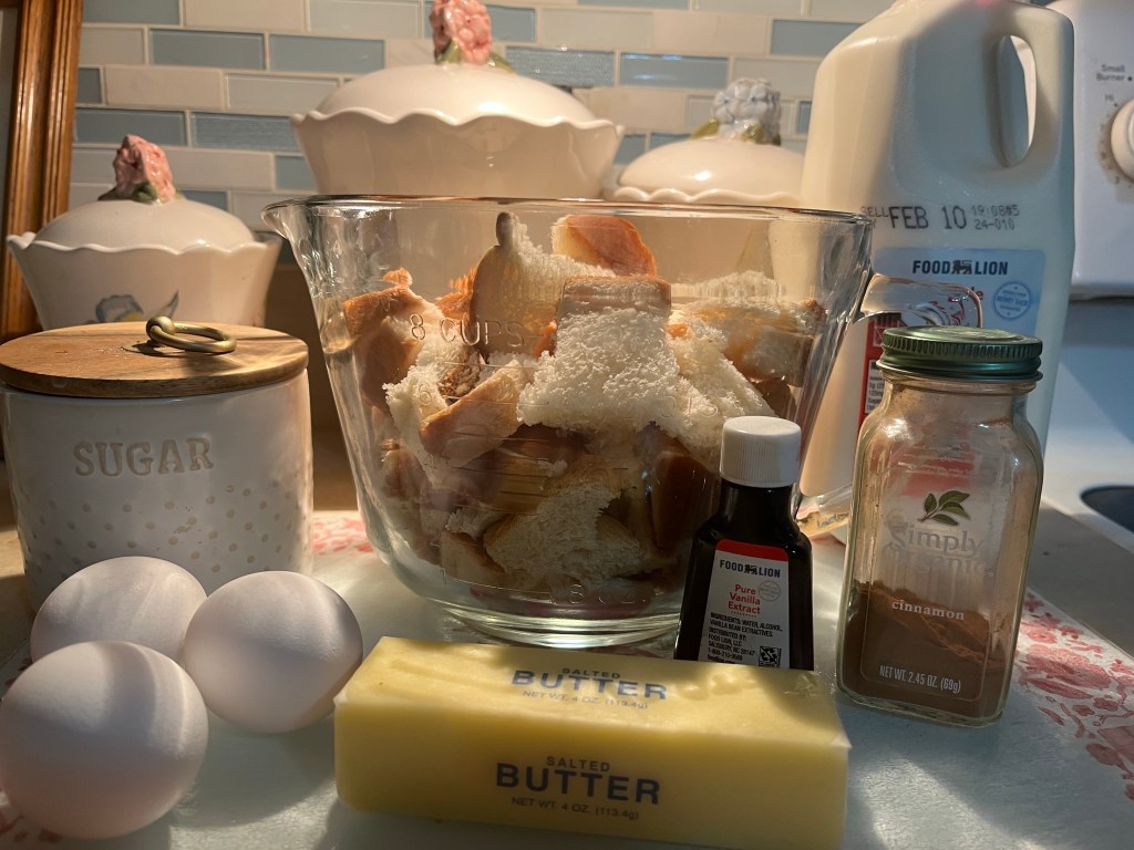 I had some days old bread laying around I thought it would be terrible for it to go to waste so…why not make Bread Pudding? 🤔