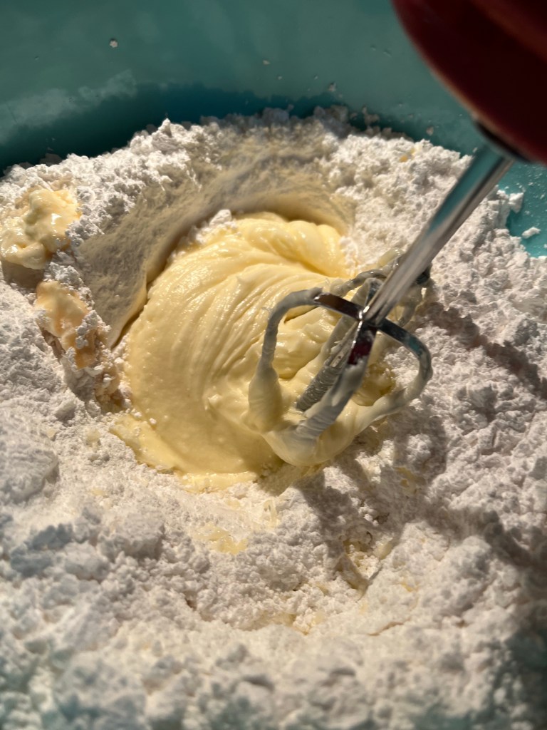 Here’s what was used for the cream cheese frosting Mix the butter, cream cheese and vanilla. Add the confectioners sugar. Use a mixer until well blended and smooth. The finished product. A delicious homemade Carrot Cake 😋Can’t keep it around long in my house haha! Enjoy!
