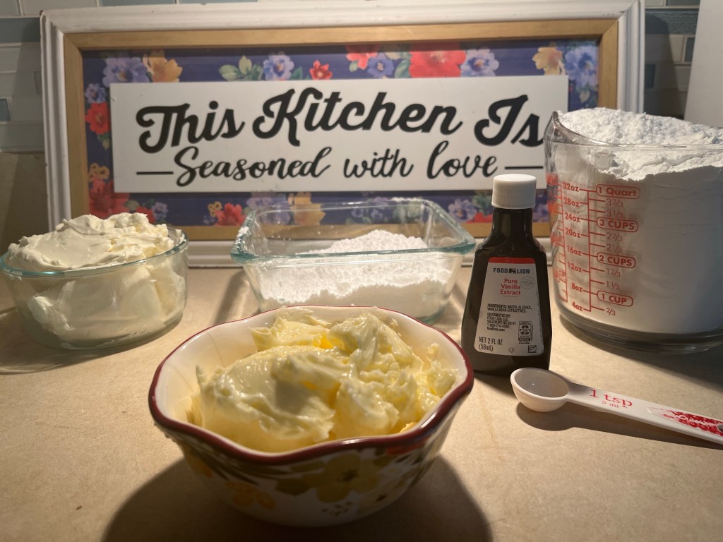 Gradually add powdered sugar, beating at low speed until blended after each addition. Stir in vanilla. Increase speed to medium-high, and beat until fluffy, 1 to 2 minutes.