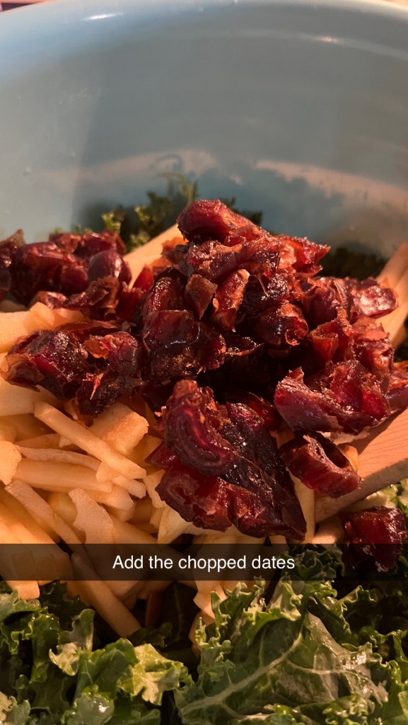 This Kale and Apple salad is so delicious that I believe I could actually pass on eating that donut (well, maybe not so fast!) but really. It has everything in it that has my tastebuds salivating and makes my heart skip-a-beat. Plus, everything in it is so good for you and the best part…it’s so simple to make.