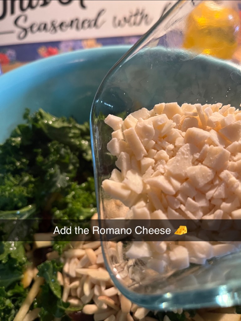 1/4 cup gated (or chopped into small pieces) Romano cheese. You can really use whatever cheese you prefer – blue cheese sounds delicious too!