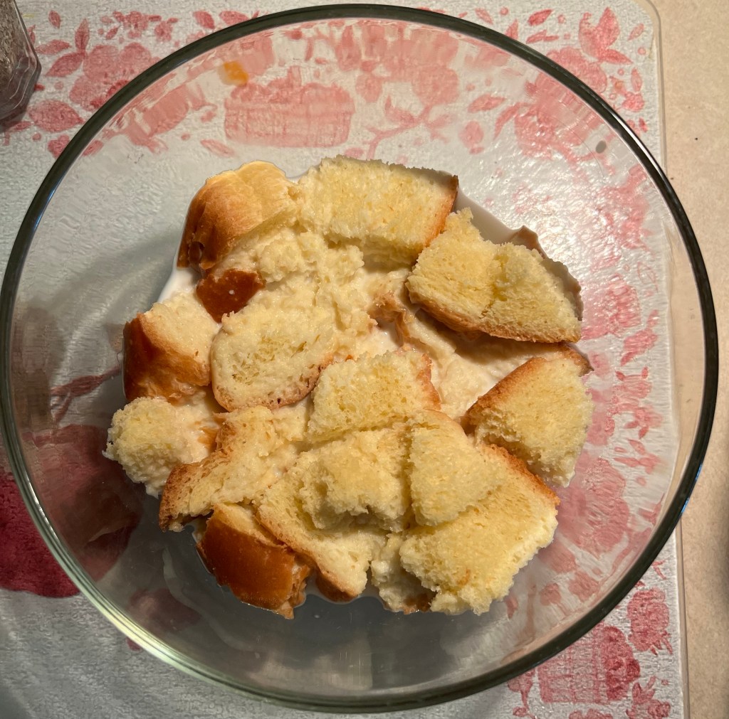In a small bowl, cube the bread and soak it in the milk.