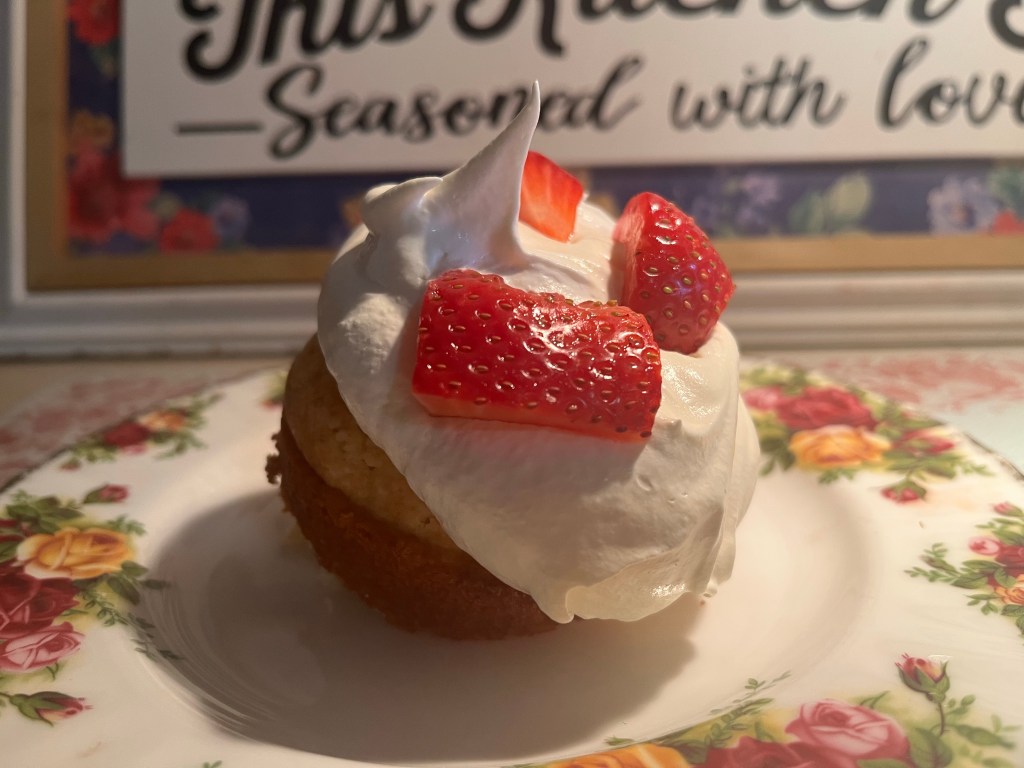 This isn’t my Grammy’s shortcakes but it comes close. Very spongy. Delicious. Made my tummy (and heart) happy eating it.