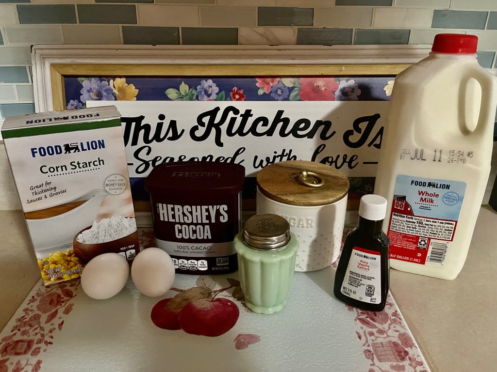So, of course, I used Hershey’s unsweetened cocoa powder to make homemade chocolate pudding as well as a Hershey’s traditional chocolate bar for chocolate shavings.