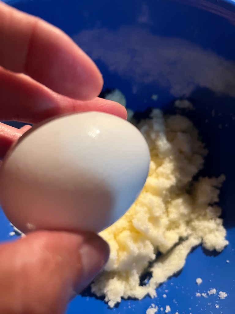 Add eggs to the butter mixture one at a time, beating until incorporated. Scrape down the bottom and sides of the bowl often.