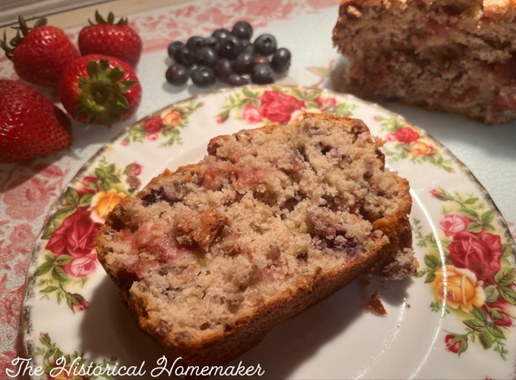 I had a few leftover strawberries, bananas and blueberries and was trying to figure out what to make with these. I could have made a healthy fruit smoothie but nah…not that a smoothie isn’t delicious BUT I just love to bake. So what’s better than a delicious fruit bread with a few pecans thrown in too 😋