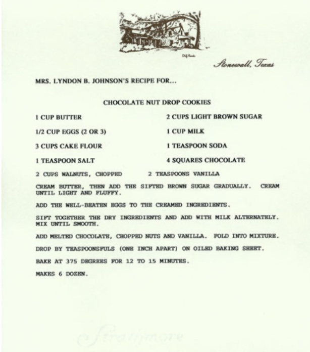 Today in the kitchen I made Lady Bird Johnson’s Chocolate Nut Drop Cookies and they are so delicious.